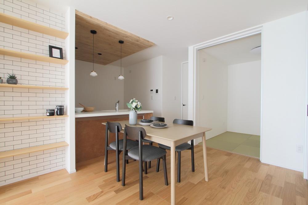 ダイニングキッチンから見える位置にタタミコーナーを配置。家事をしながら遊んだり、お昼寝をするご家族の様子が窺えます。
