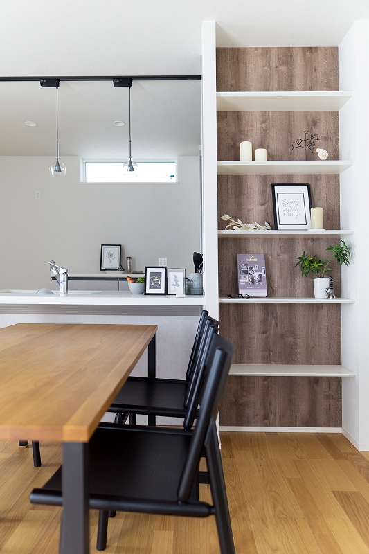 4 生活感をおしゃれに隠す、飾り棚がアクセント