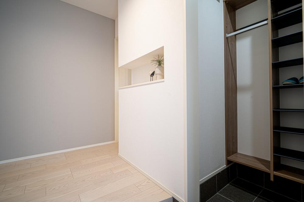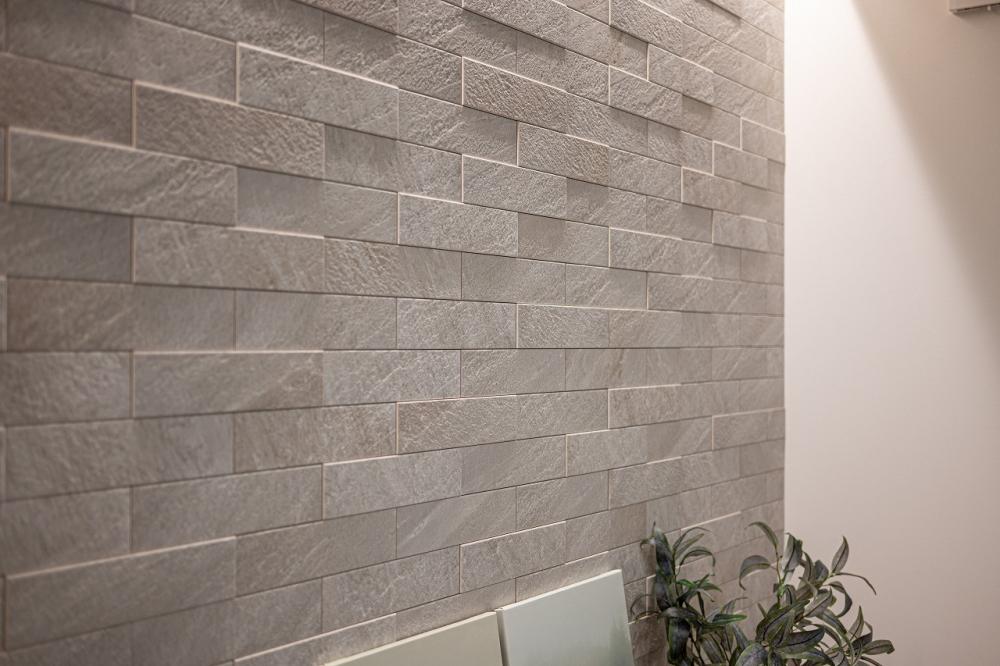 「調湿機能」や「脱臭効果」のエコカラットを壁一面に。高級感のある表情が魅力。