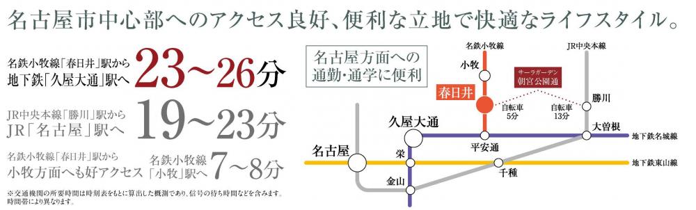 - 名鉄小牧線「春日井駅」:約1,400m、自転車で約5分