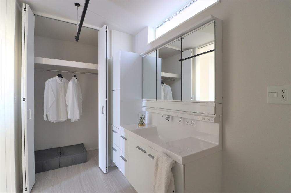洗面所にたっぷり収納を完備。家事の動線を効率化させてくれます。