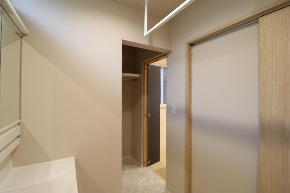 洗面所にあると、洗濯機からすぐ干せるから動線がスムーズで家事の時短になります!