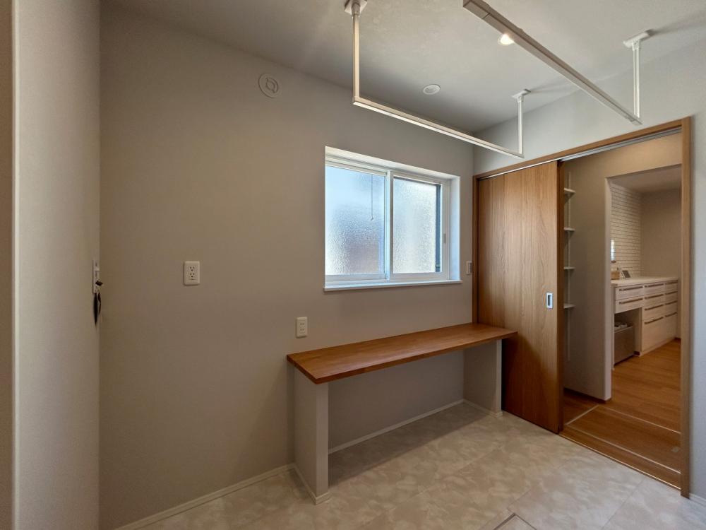 物干しとカウンターを備えたランドリールームは、洗濯作業を1部屋で完結できる快適空間。