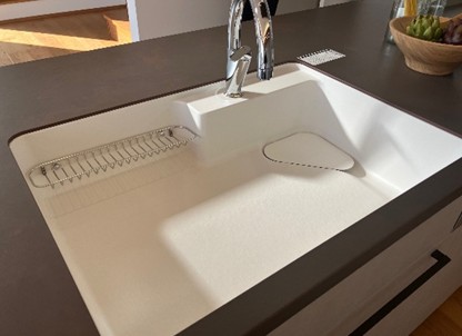 表面硬度が高く、傷や汚れに強い素材を採用。変色の心配も少ないため、長く美しいシンクを保つことができます。 -