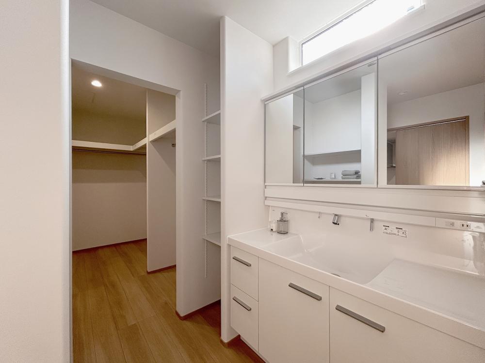 横並びのダイニングなら配膳も数歩で完了。家事に追われる時間を最小限に抑えることで、キッチンに立ちながら家族と笑い合う、心豊かなひとときを創り出します。またキッチンと脱衣所を直結させた一直線の動線が、忙しい朝のマルチタスクを劇的に楽にします。料理の合間に洗濯を回し、お子様のお着替えをサポートする。その「1歩」を削る工夫が、時間にゆとりを生み出します。