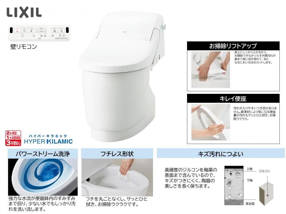 フチレス形状やアクアセラミック加工により、汚れが付きにくく掃除も簡単。節水性にも優れ、快適なトイレ空間を実現します。