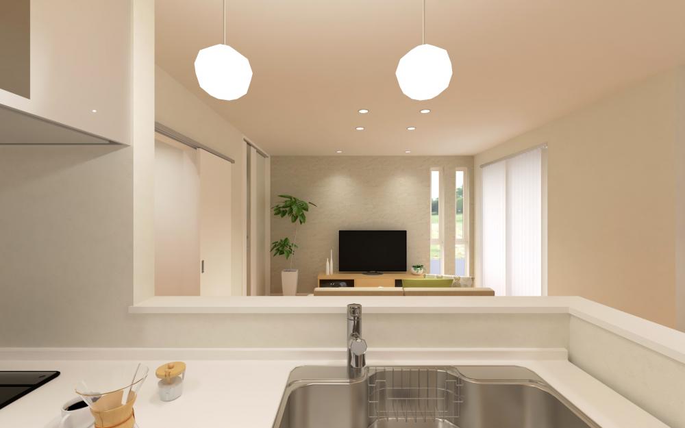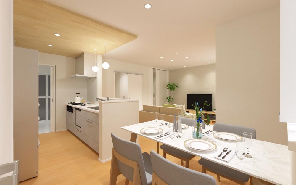 ご家族の絆を深めるLDKは、開放感あふれる広さを確保。ダイニング・リビングを見渡せる対面式キッチンを採用しているため、家事をしながらご家族との会話を存分に楽しむことができます。