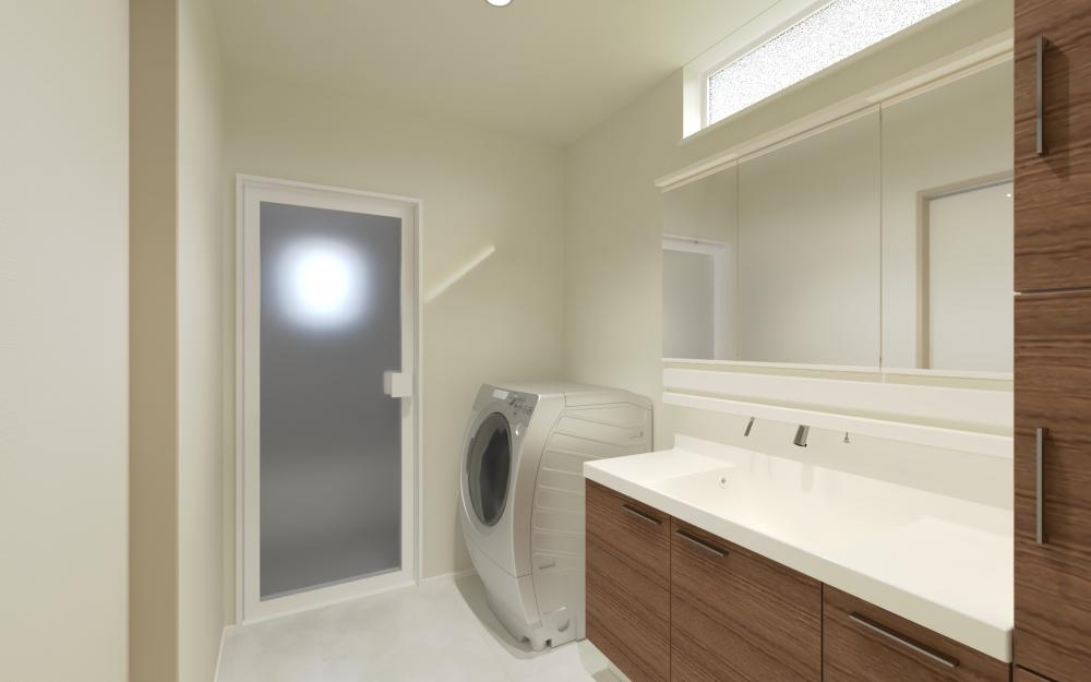 洗面所には室内で衣類が干せるように物干し金物が備え付け!