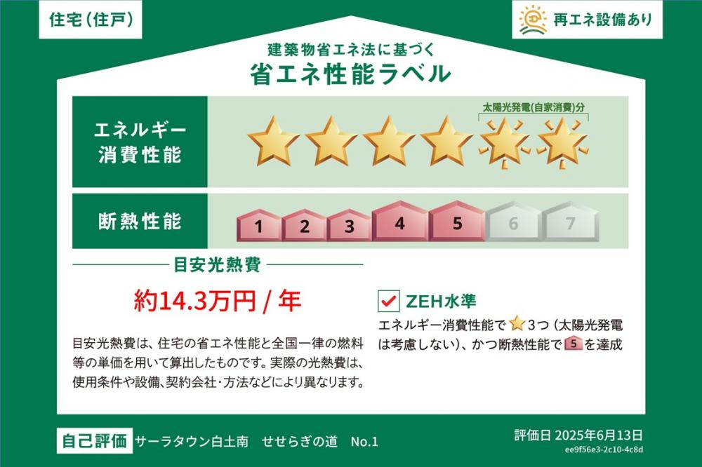 ※販売住戸が複数の場合、本ラベルは特定の住戸の性能を示し、全ての住戸の性能を示すものではありません。