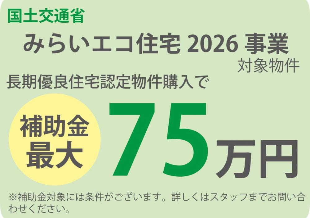 令和8年度の新しい住宅支援制度が始まりました。 弊社の長期優良住宅をご購入いただく「子育て世帯・若者夫婦世帯」の皆様に、75万円の補助金が交付されます。