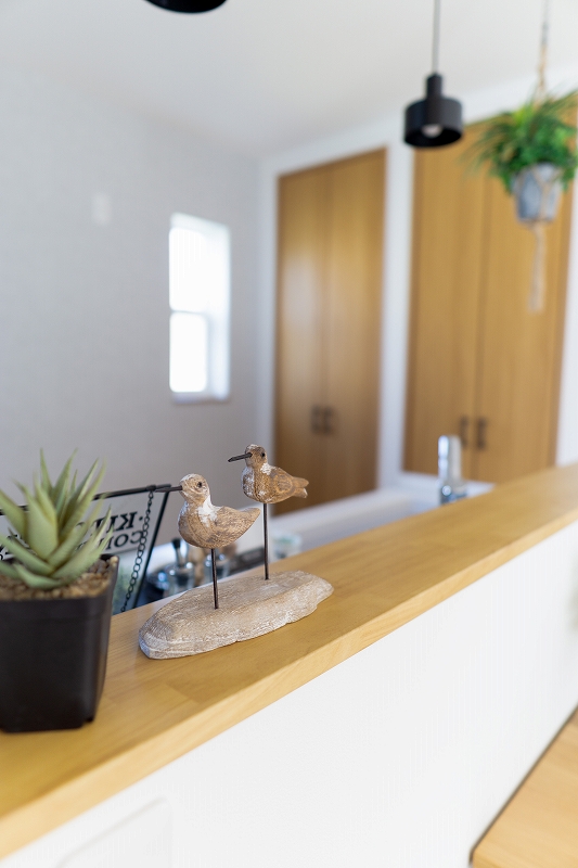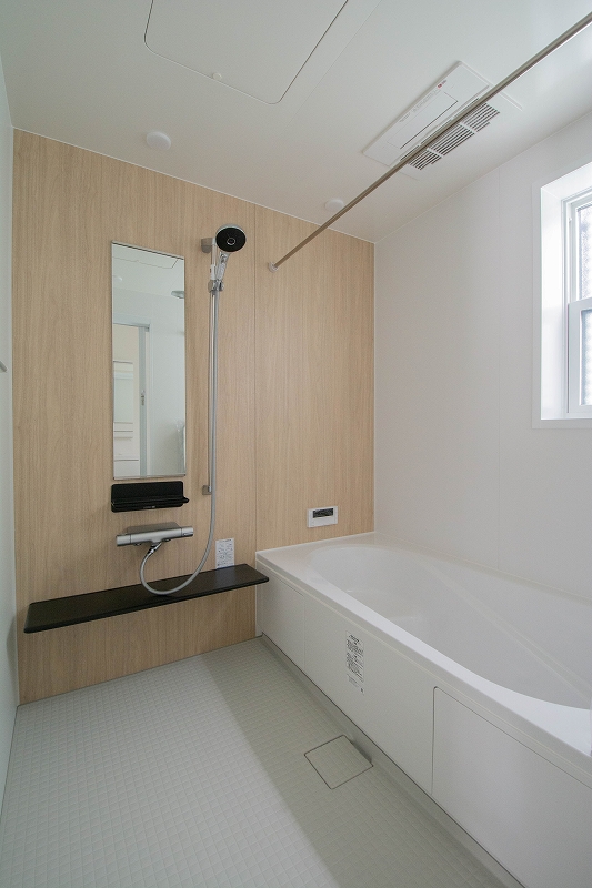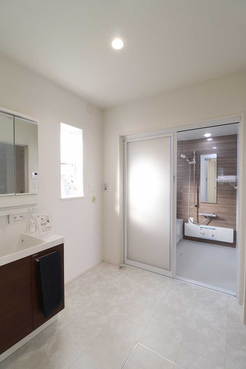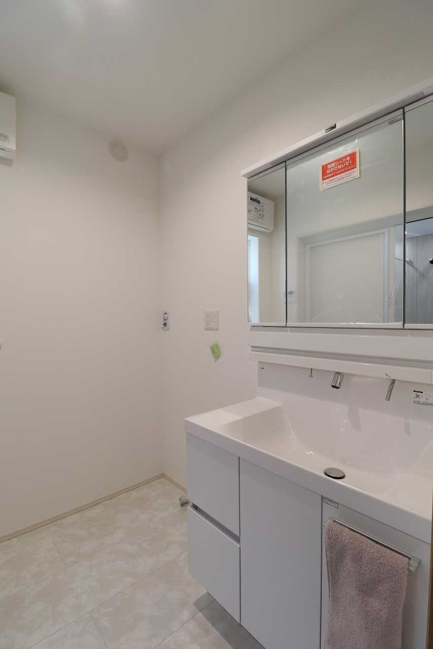 洗面化粧台はリクシルEVを採用。広めのユーティリティスペースは、お子様とのお風呂タイムもスムーズです!