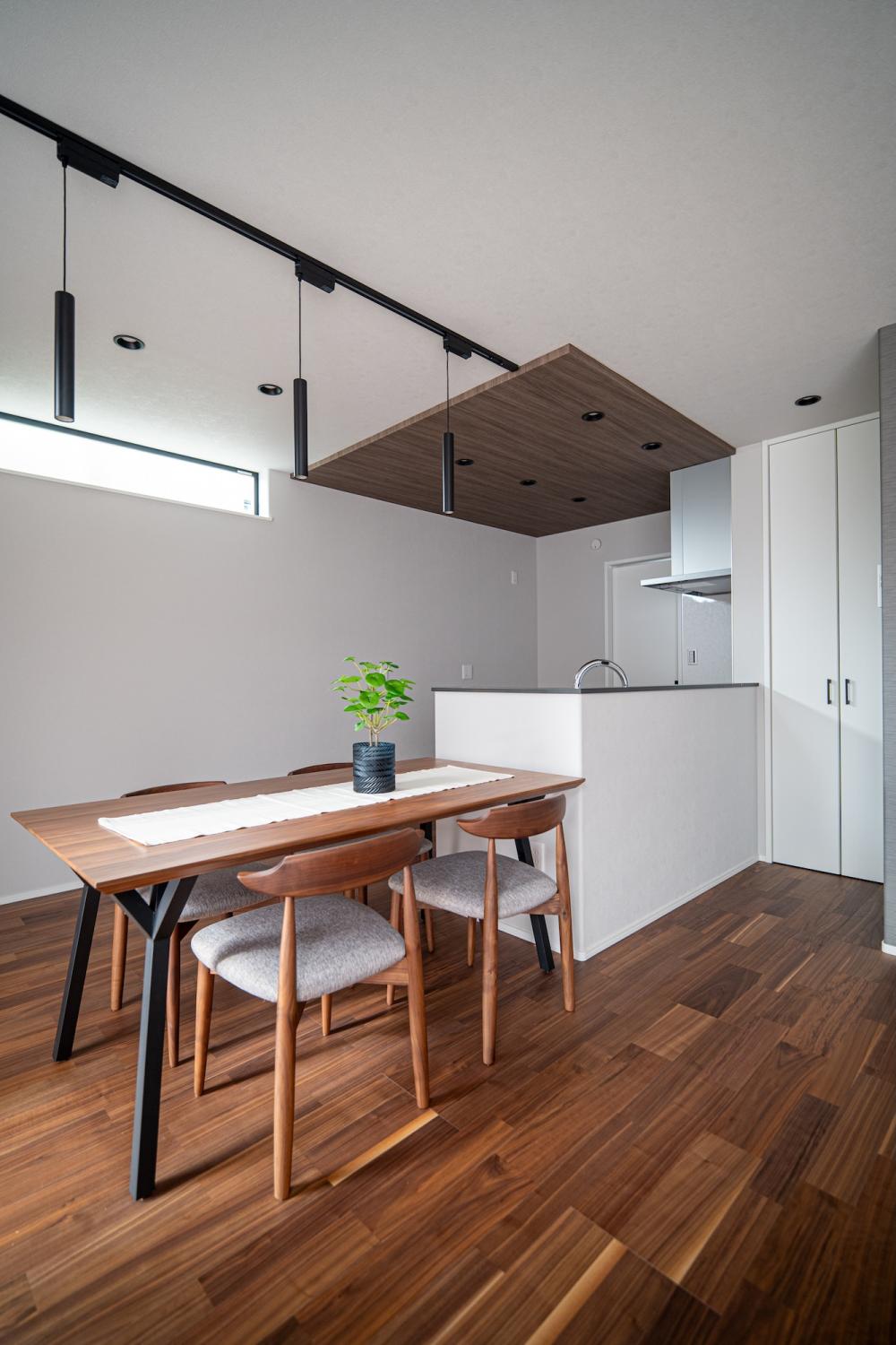 落ち着いたトーンのフローリングが空間全体に統一感を与えます。