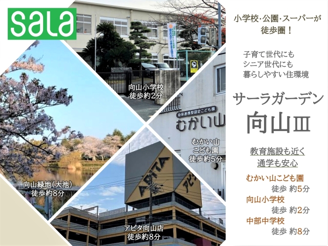 - 向山小学校:約160m、徒歩約2分