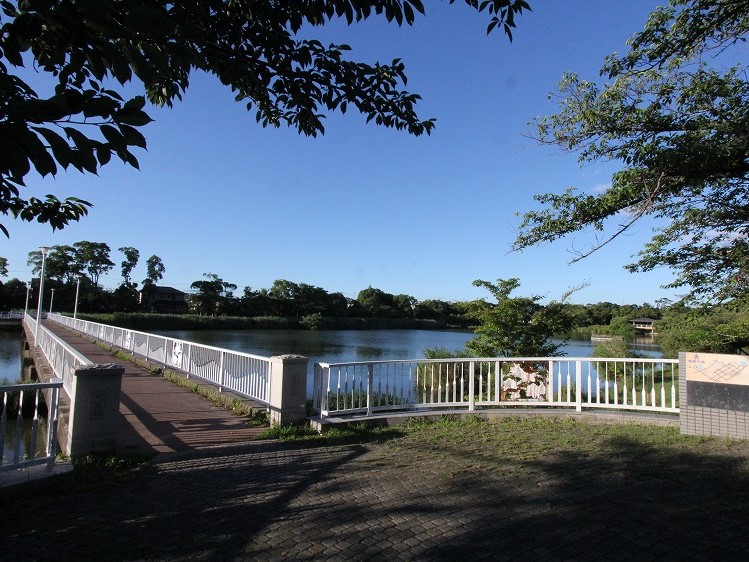 大きな池を囲む遊歩道が整った公園で、散歩やジョギングに最適。