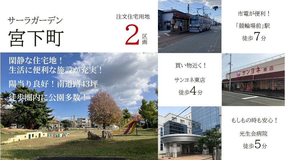 豊鉄市内線「競輪場前」駅まで徒歩約7分、注文住宅用地2区画新発売。