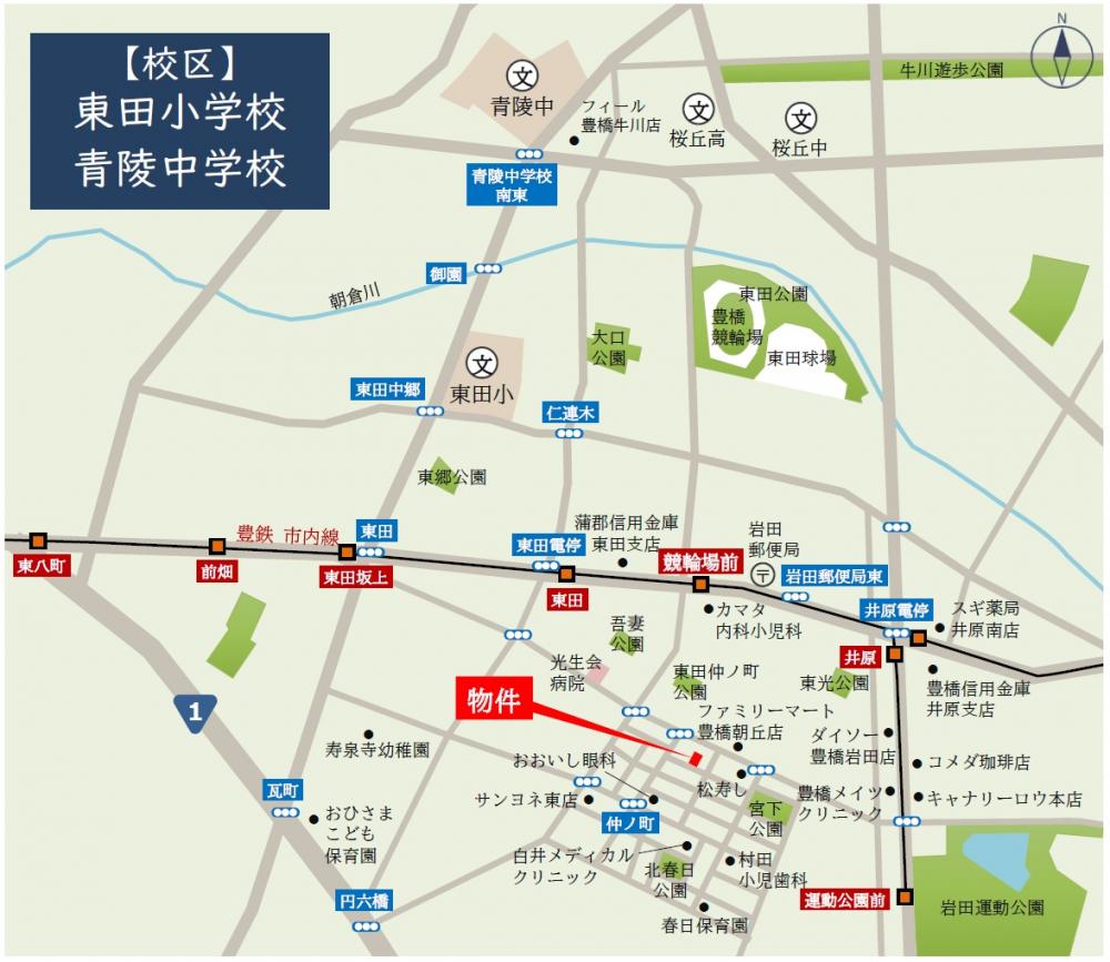 - 青陵中学校:約2200m、徒歩約28分