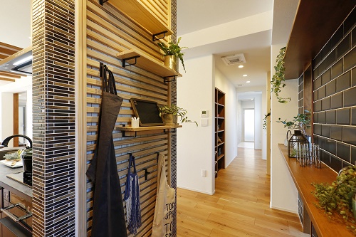 飾るように片づける、木のぬくもりを感じるキッチンサイド